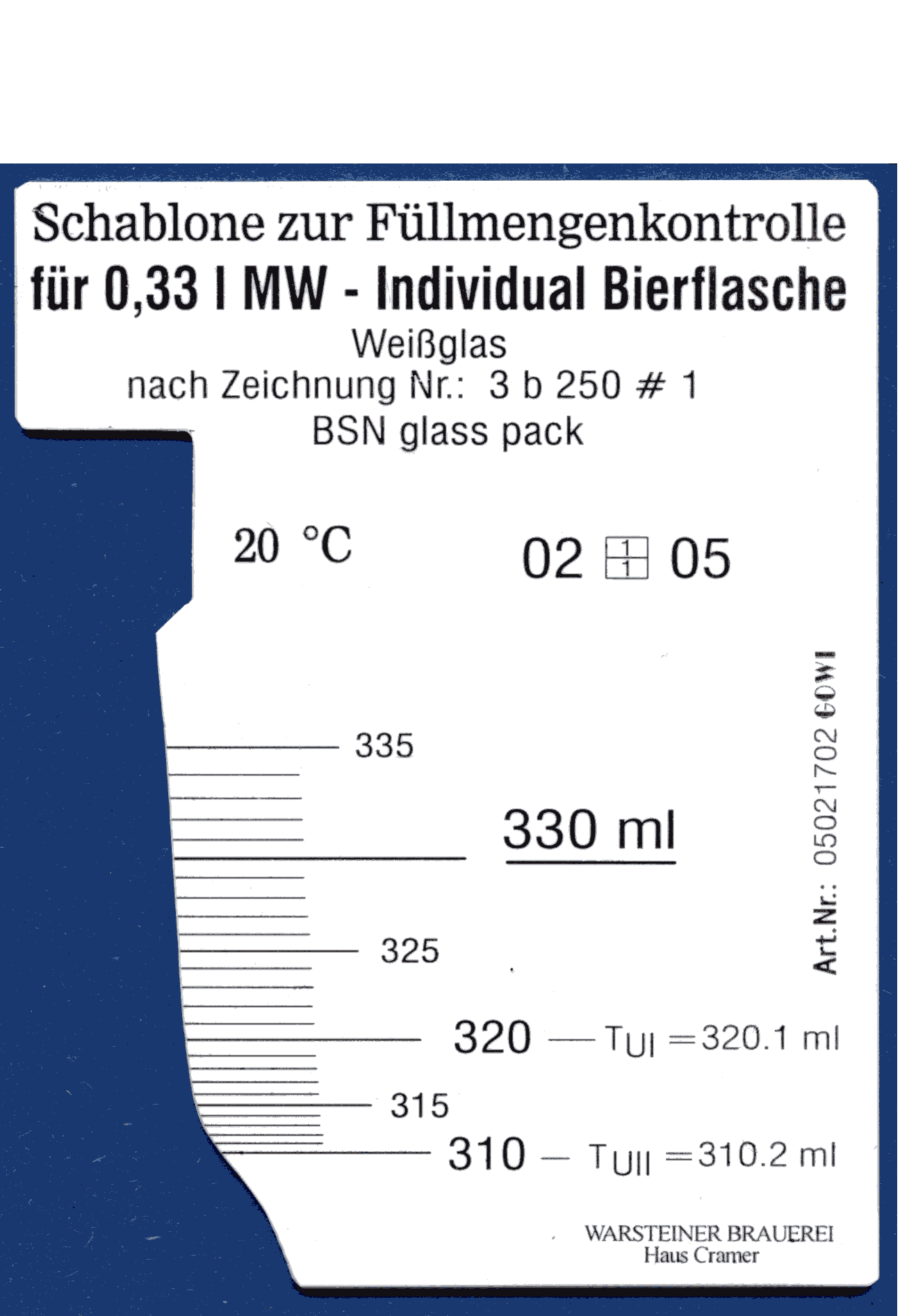 Weißglas, nach Zeichnung Nr. 3 b 250 # 1 BSN Glass Pack